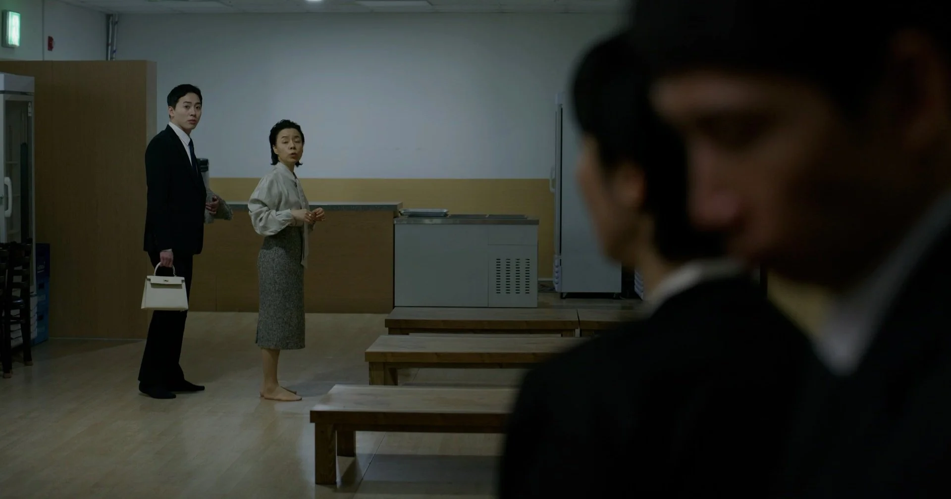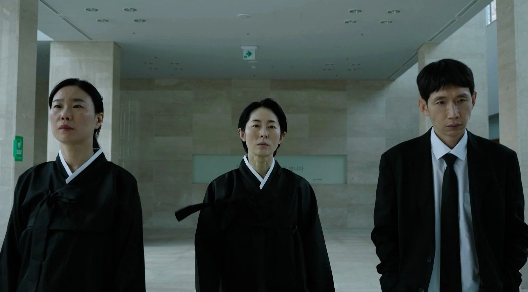 아버지의 죽음이 임박한 상황에서 가족이라는 강압적 연대로 인해 서로를 다시 마주하게 되는 선영과 일회. 병원에서 오랜만에 서로를 다시 마주한 이들은 영화 전반에서 메타포로 등장하는 “감”에 비유하자면 마치 떫은 감 과 같다. 각자의 현실에 치여 날이 선채로 살아가느라 서로를 이해할 여유가 없다. 하지만 가짜 장례 라는 황당한 상황과 그에 동반하는 우여곡절을 함께 겪으며 성숙해 결국에는 달디 단 홍시감의 모습으로 변모한다. 장례식장이 딸린 종합병원인 우리중앙병원 은 이 가족이 겪는 일련의 사건들이 일어나는 주 무대이자 삶과 죽음의 경계인 장소 로서 이 영화에서 선영과 일회의 가족들이 경험하게 되는 극단적인 감정들의 발현 무대이다. 종합병원은 “삶”에 더 가까운 공간으로 우리가 마주하는 차갑고 복잡한 현실을 대변하며 그 속에서 치열하게 살고자 하는 사람들의 공간이다. 쓴맛과 단맛을 동시에 가진 인생과 같은 이곳을 청록 - 주황 대비를 통하여 표현하고자 하였다. 두 색이 만나 만드는 색들도 적절히 배치하여 조화와 균형을 보여주었다. 한편 장례식장은 “죽음”에 더 가까운 공간이자 인물들이 내면을 드러내고 인생과 가족의 의미에 대한 성찰을 하는 공간이다. 비록 이 공간은 가짜 장례라는 그들만의 “연극”의 무대로 전락하지만 그 연극 속에서 선영과 일회 가족은 서로 묵혀두었던 곯은 감정들을 토해내고 서로의 진심, 깊은 감정들을 드러내며 좀 더 진실되어진다. 따라서 병원보다 따뜻하고 진지한 느낌의 공간을 만드는데 집중하였고 주황과 베이지의 조화를 통해 배경을 차분하게 만들어 검정 상복을 입은 인물들이 드러내는 감정과 행동에 관객이 몰입할 수 있도록 하였다.