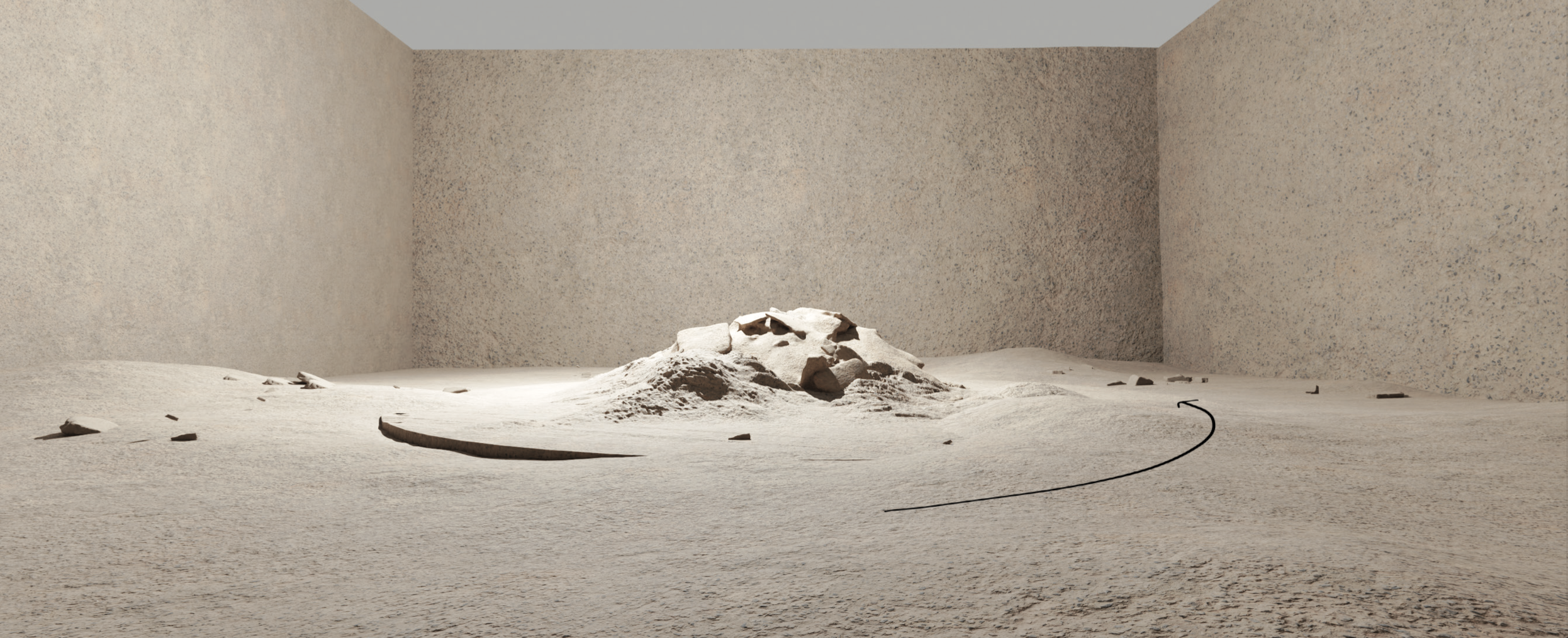 텅빈 실내, 잿빛 조명